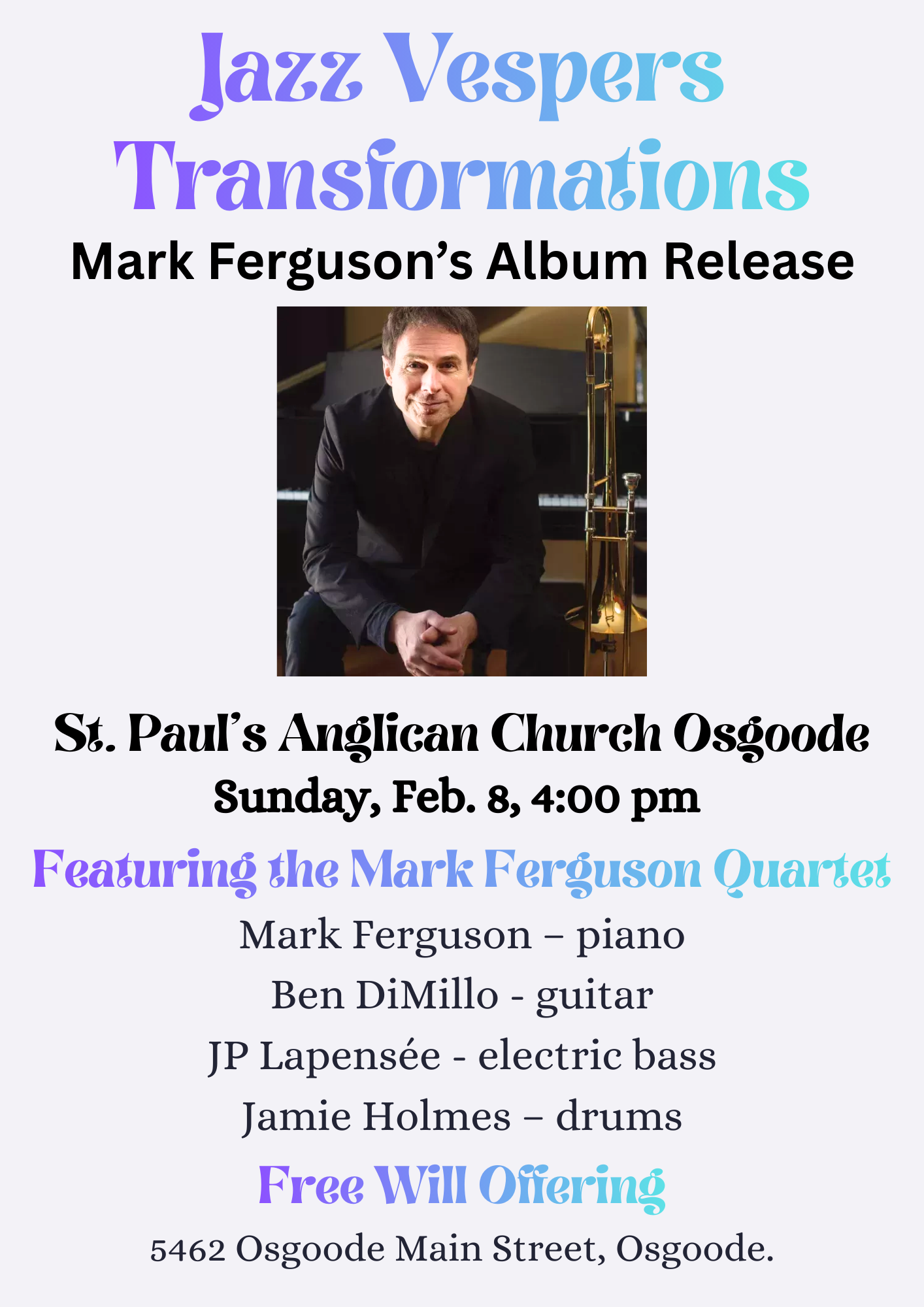 Photos from Jazz Vespers Transformations - Mark Ferguson’s Album Debut. Courtesy of Eric Stewart.